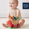 Babies love to pull scarves from a "tissue" box. This farm themed Itzy Sensory Scarves will entertain and teach. Develop hand-eye coordination and fine motor skills with our adorable Itzy Sensory scarves. Includes 4 soft scarves with learning features including animals, numbers, colors, and textures.